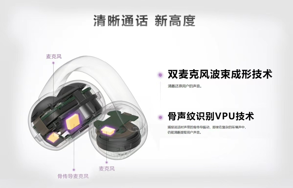 双麦克风+骨传导传感器,AI降噪优化语音拾取