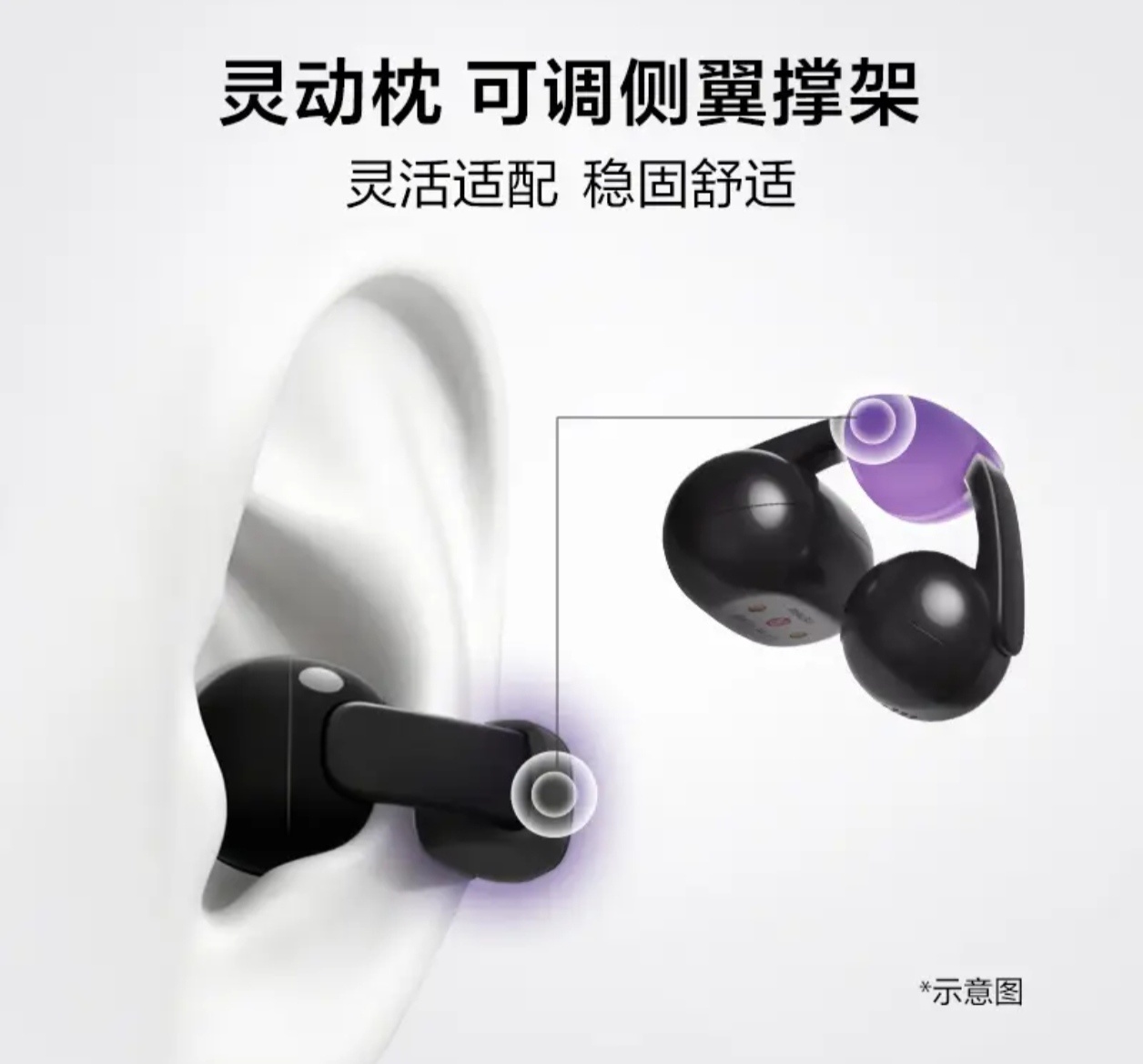 采用C形耳挂开放式真无线,单耳轻量设计,支持IPX4防水