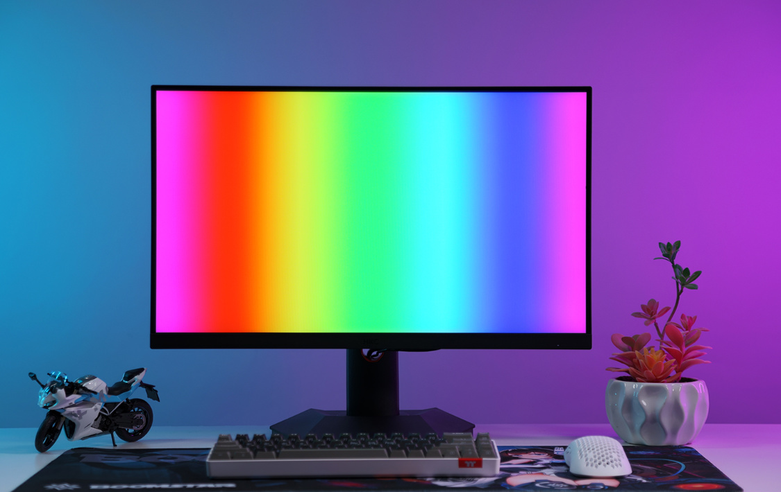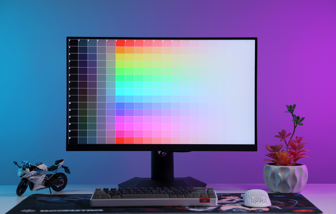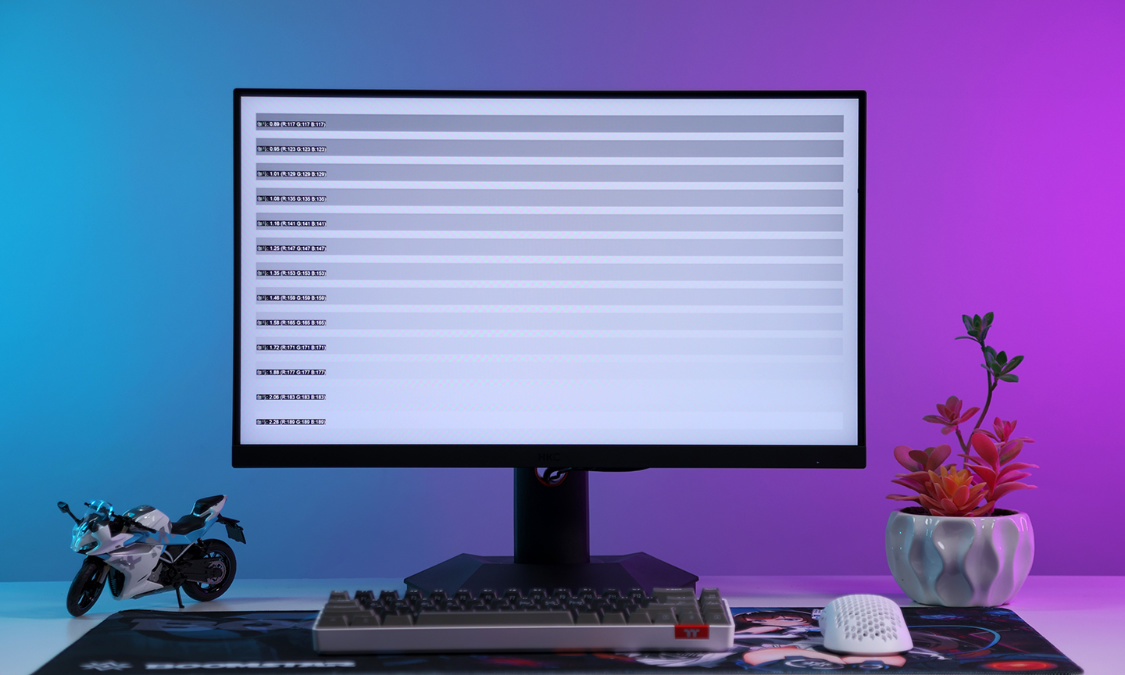 在灰階過渡與多色漸變畫面中,顯示器在不同顏色之間的變化十分平滑,沒有出現明顯的噪點或色彩變化突兀的情況;