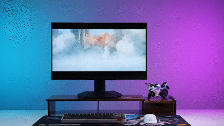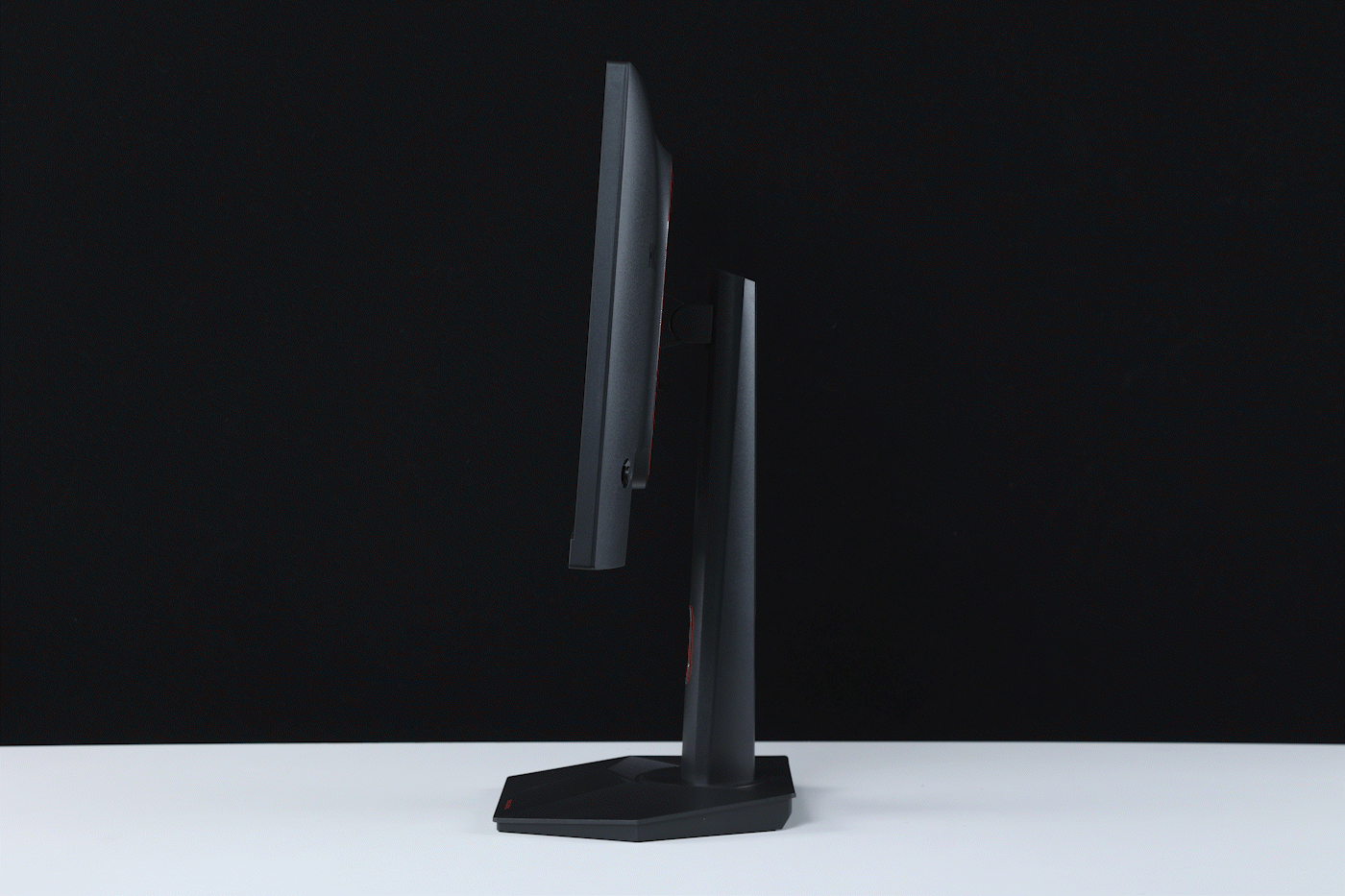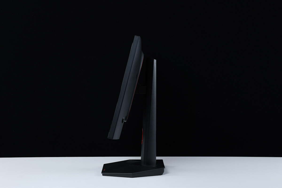 顯示器支持上下約110mm的升降高度,平面支持-30°至+30°的旋轉,前後俯仰角度最大也可以達到-5°至+15°的調整,同時顯示器也支持左右-90°至+90°的橫豎向旋轉。玩家可以根據自己的習慣調整顯示器的顯示角度,也可以將屏幕豎置,當副屏拓展;
