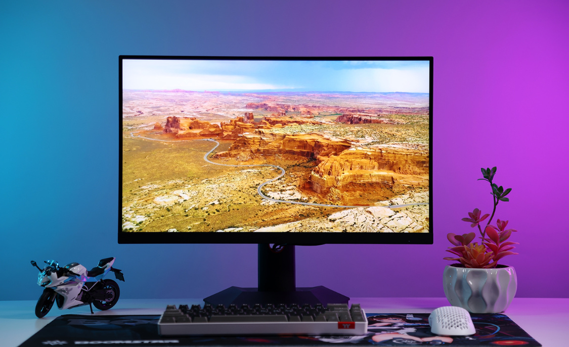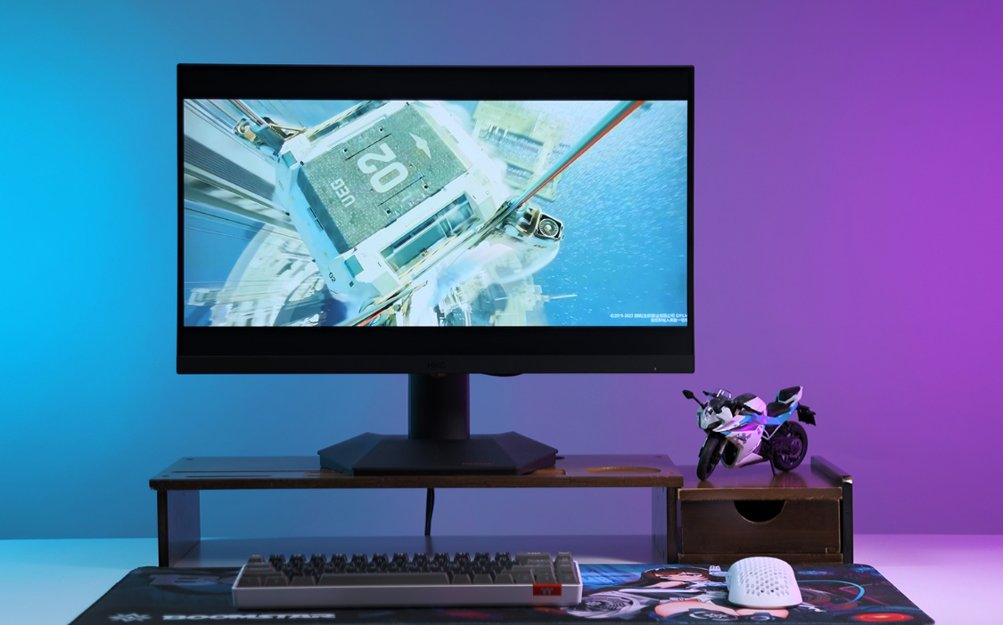 顯示器採用的是京東方 MV238QHM-NF0屏幕模組,也是當下主流2K電競顯示器的經典選擇。此外,顯示器還採用了原廠背光模組,23.8寸的屏幕尺寸,擁有123PPi的像素密度,支持顯示2K QHD的畫面,畫面精細度的表現十分優秀。在FAST IPS面板的加持下,顯示器最大支持165HZ的刷新率,GTG響應時間最快可達1ms,遊玩FPS遊戲時也不用擔心出現畫面撕裂的問題,16:9的屏幕比例也可以適配絕大多數應用場景;
