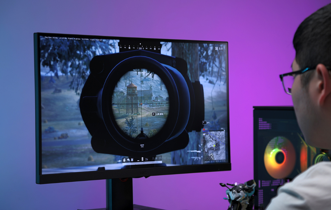 27寸甚至更大屏的顯示器早已成爲時下網吧的標配,但實際上,最適合電競遊戲的屏幕尺寸其實是24英寸,在很多專業的FPS電競比賽中出鏡率最高的也是這個尺寸。究其原因,其實是這個尺寸的屏幕更符合人的肉眼區域感官,不存在視野盲區和死角,對視覺操控上更加好,眼睛神經給大腦反饋的信息更加及時和全面。再加上2K 165Hz的加持,玩喫雞/CF/彩虹六號這類遊戲其實都很實用。