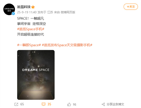 追覓手機項目最早是在去年9月官宣,當時預熱的信息是“追覓發佈Space天文級攝影手機”。