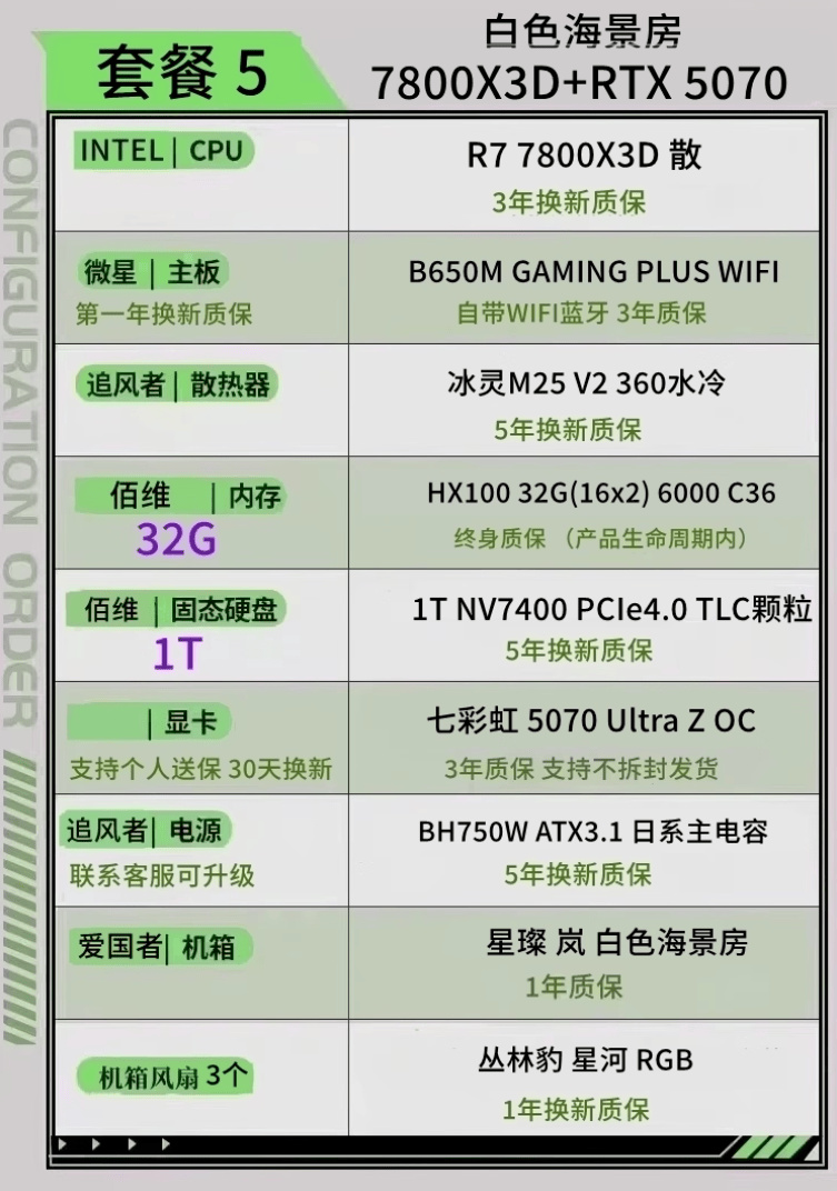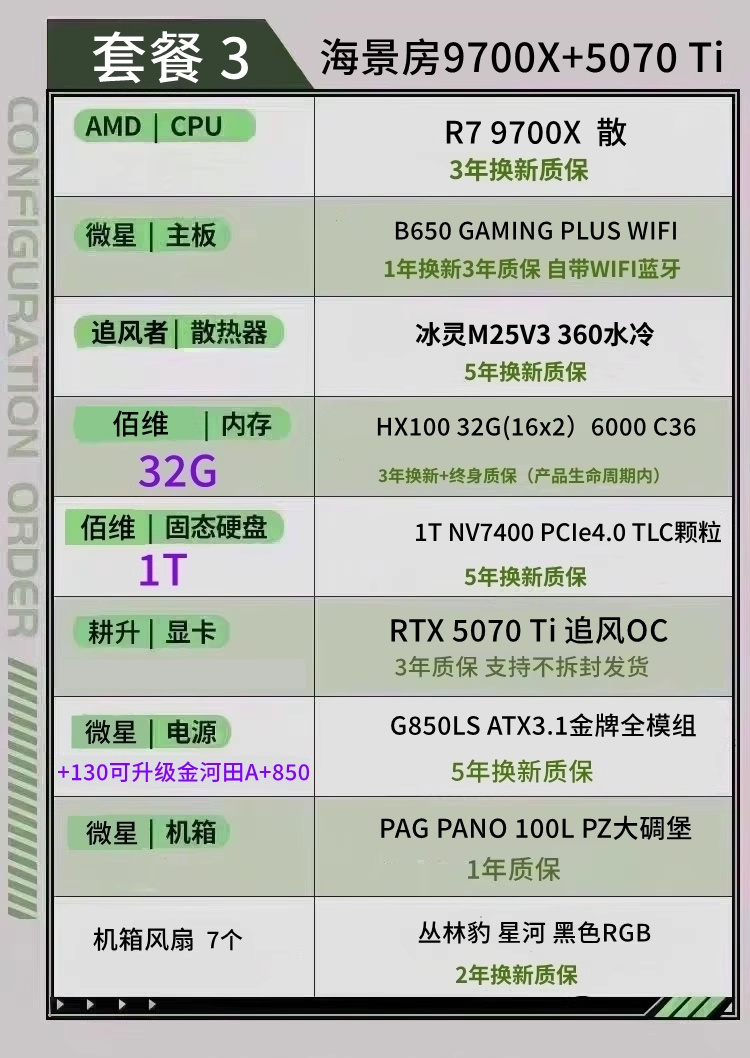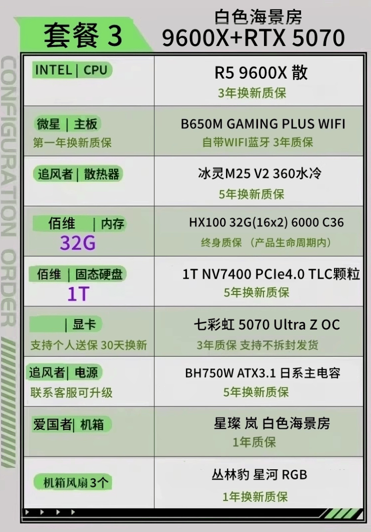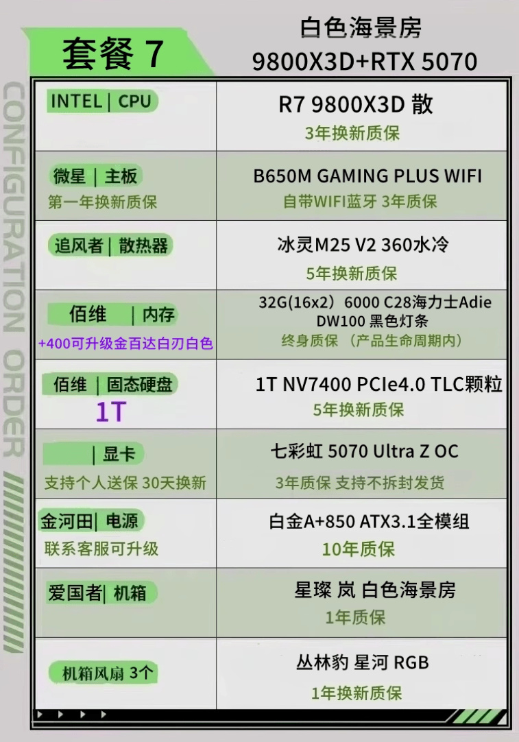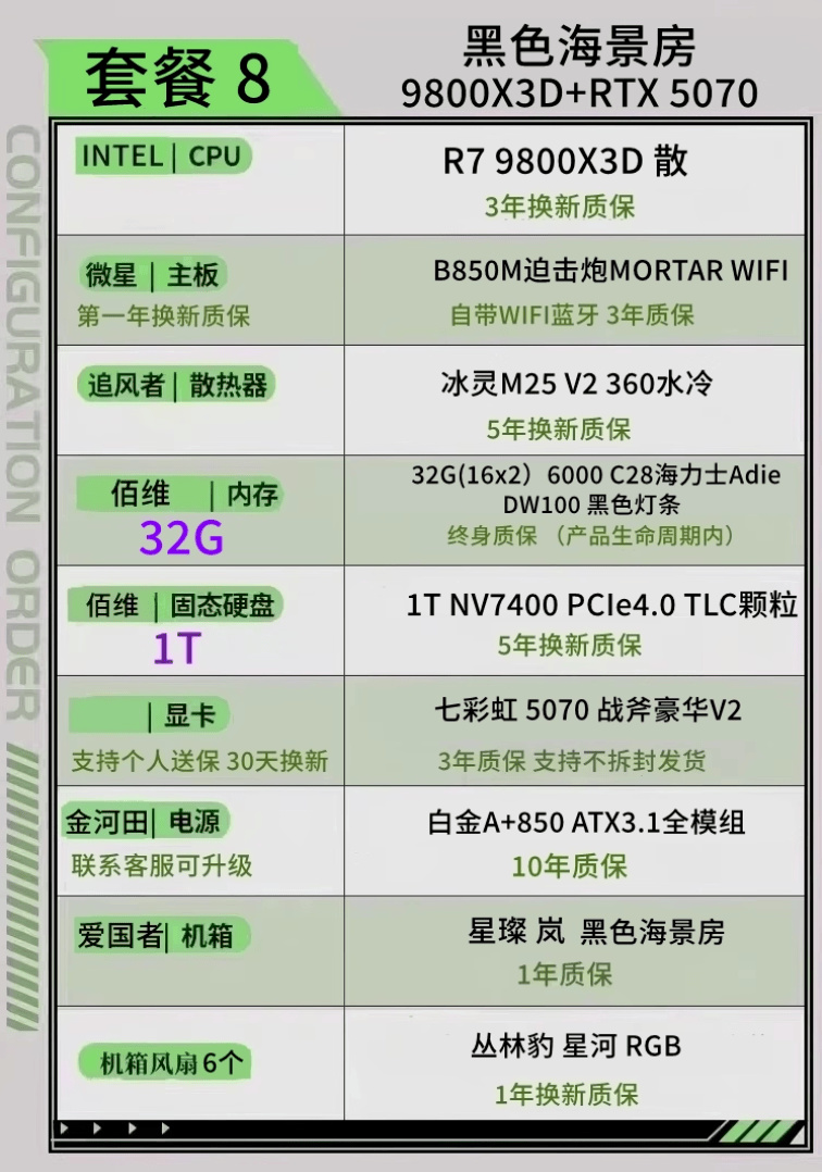 顯卡5070 內存6000C28 CPU 9800X3D