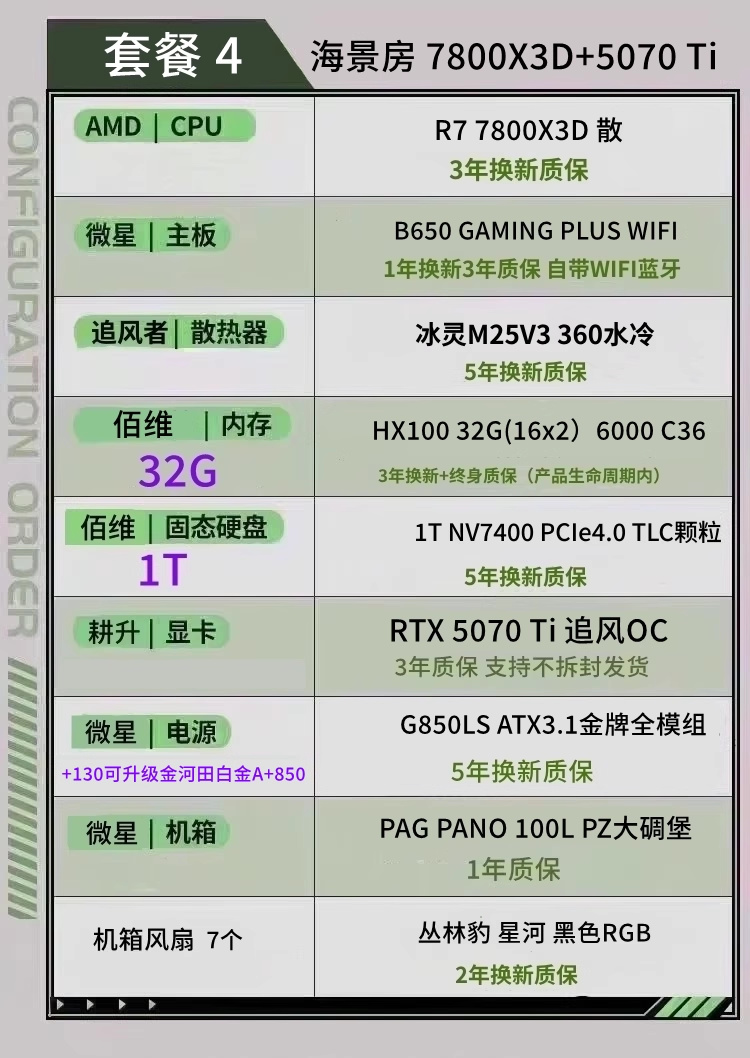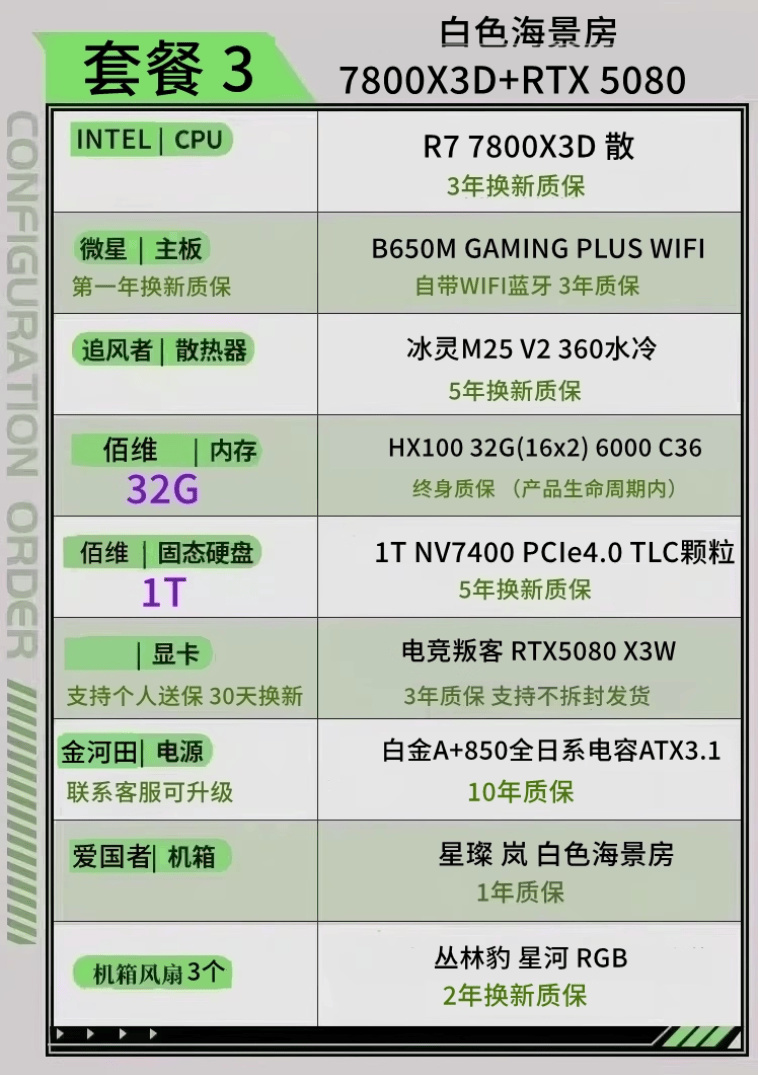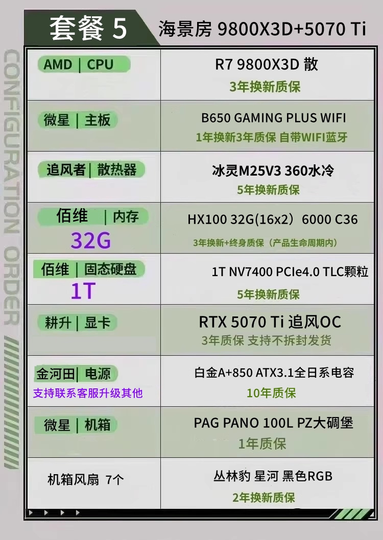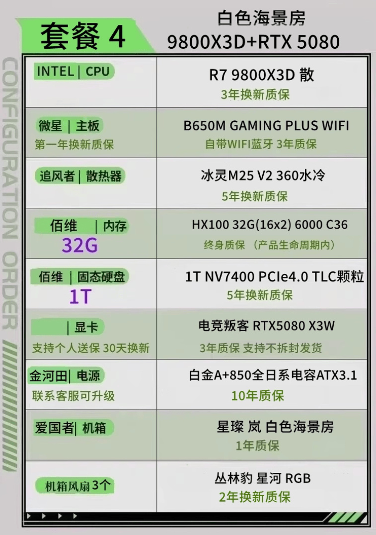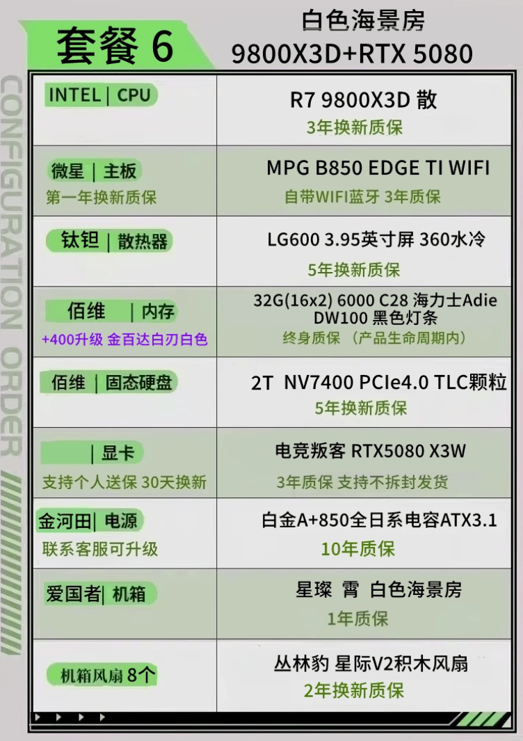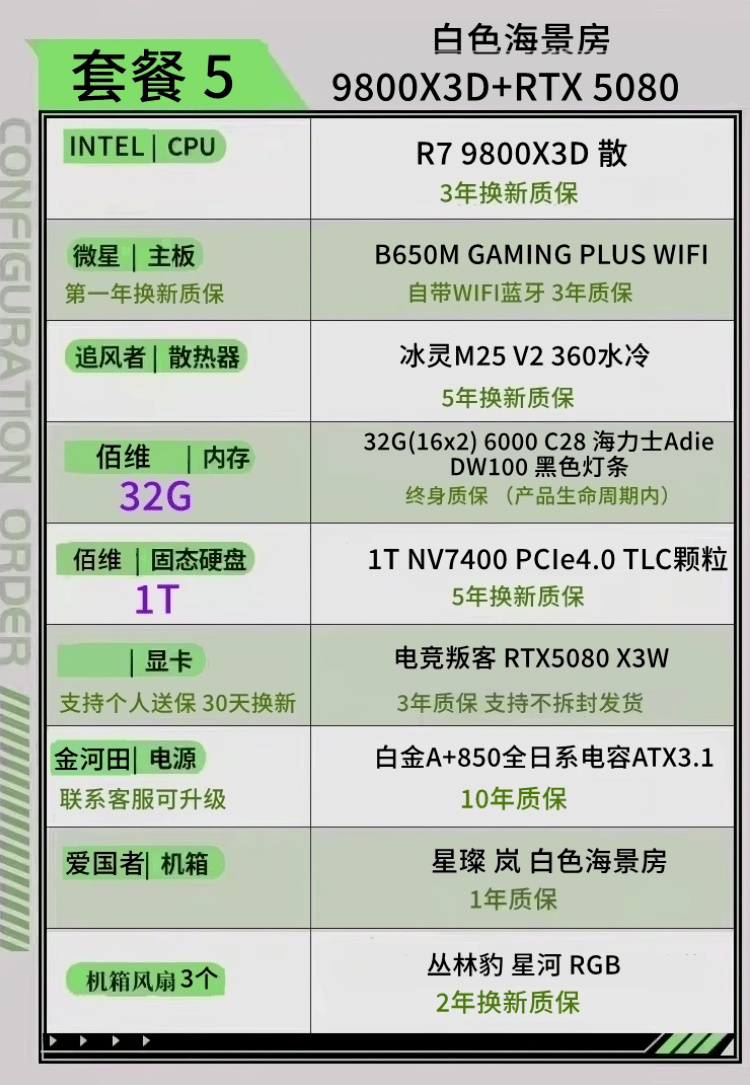 顯卡 5080 內存6000C28 2T固態 CPU 9800X3D