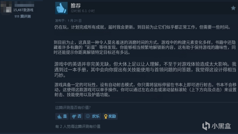 魔书娘今日也是如同往常一样点开《魔书射爆》的评论区,看看有无玩家反馈BUG。一个外区的新评测映入魔书娘的眼帘,魔书娘面对好评当然是如饥似渴啪一个点击进入查看。