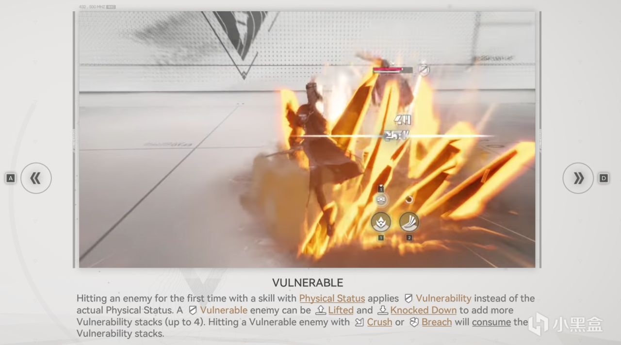 vulnerability 强调的是“脆弱性”,敌人被击打之后会stack up(堆叠)该特性,并达到一定阶段后影响其自身行动