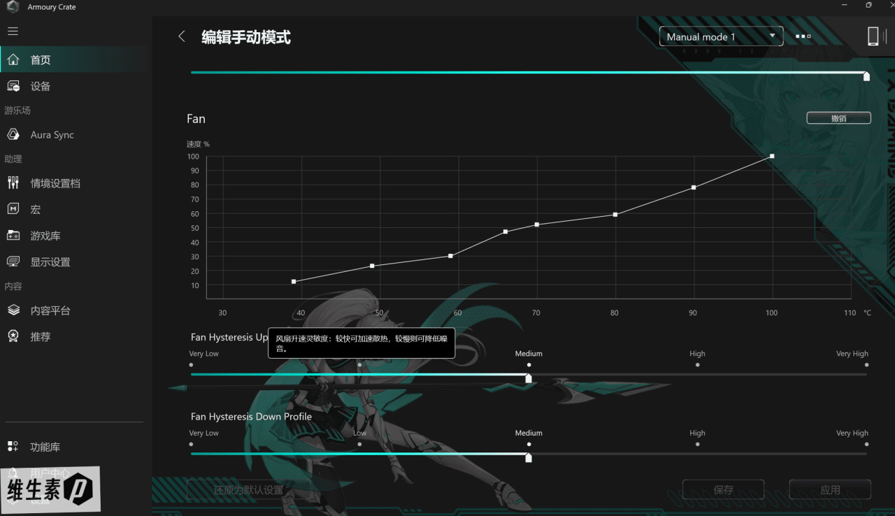 在奧創控制檯內,可以使用手動模式調控自己喜歡的功耗限制和風扇調控。