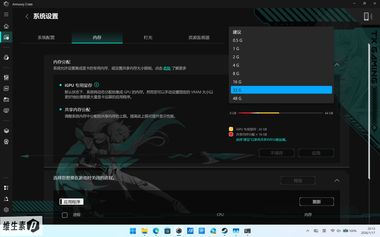 但是如果你買了這臺華碩天選 Air 2026 銳龍 AI Max版,就可以玩轉 14B 和 32B,它甚至可以劃分 16G 內存 + 48G 顯存,滿足個性化的本地 AI 部署需求。