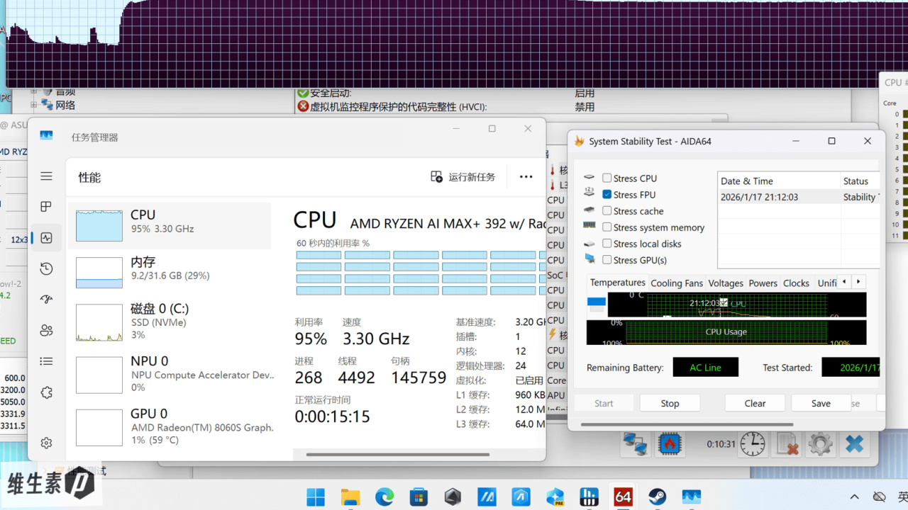 AMD 銳龍 AI MAX+ 392 這顆處理器性能到底怎麼樣?立馬跑個分來看一看。