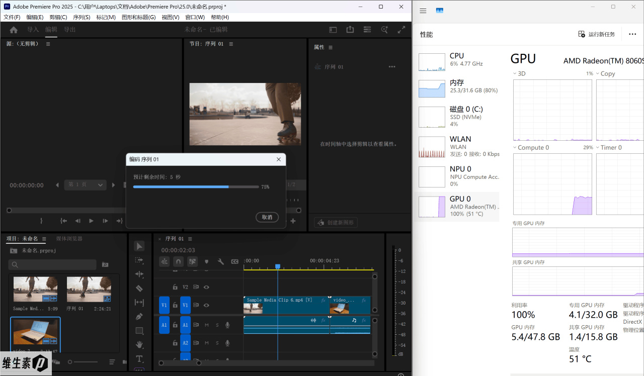 這麼強的性能用來打打遊戲,做一些視頻剪輯,也都是完全搞得定的,剪映和 PR 2025 都可以正常使用,進行編解碼以及導出。