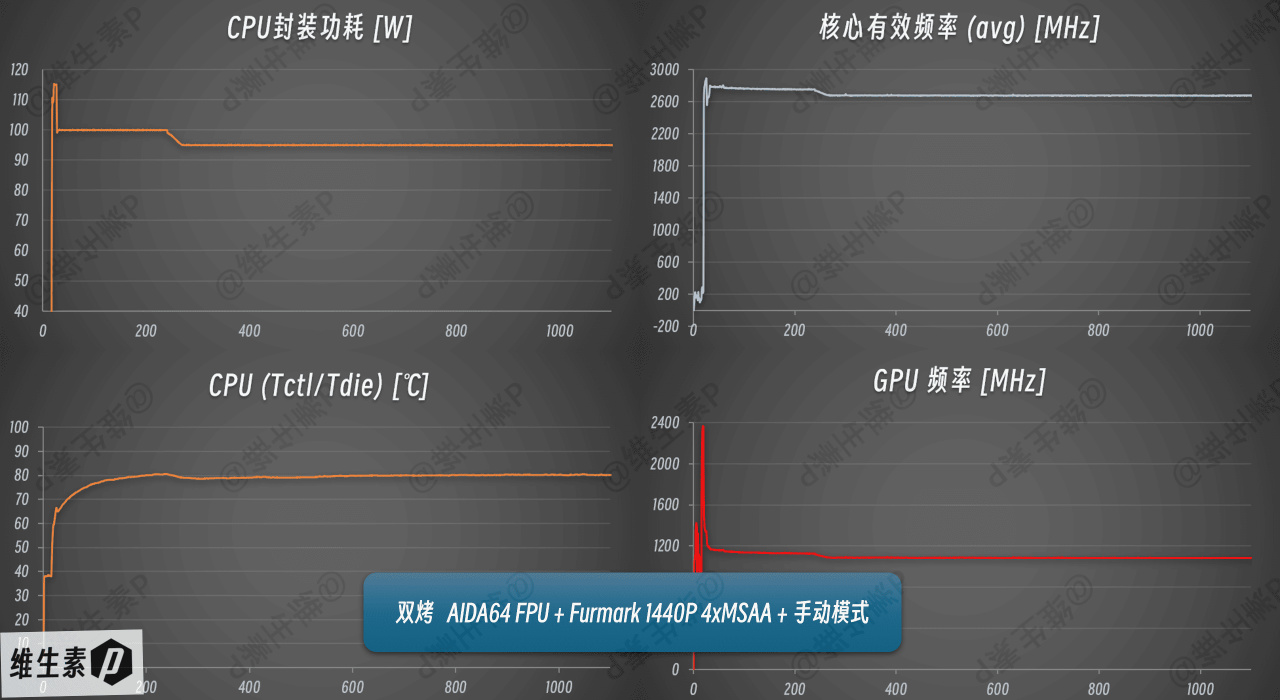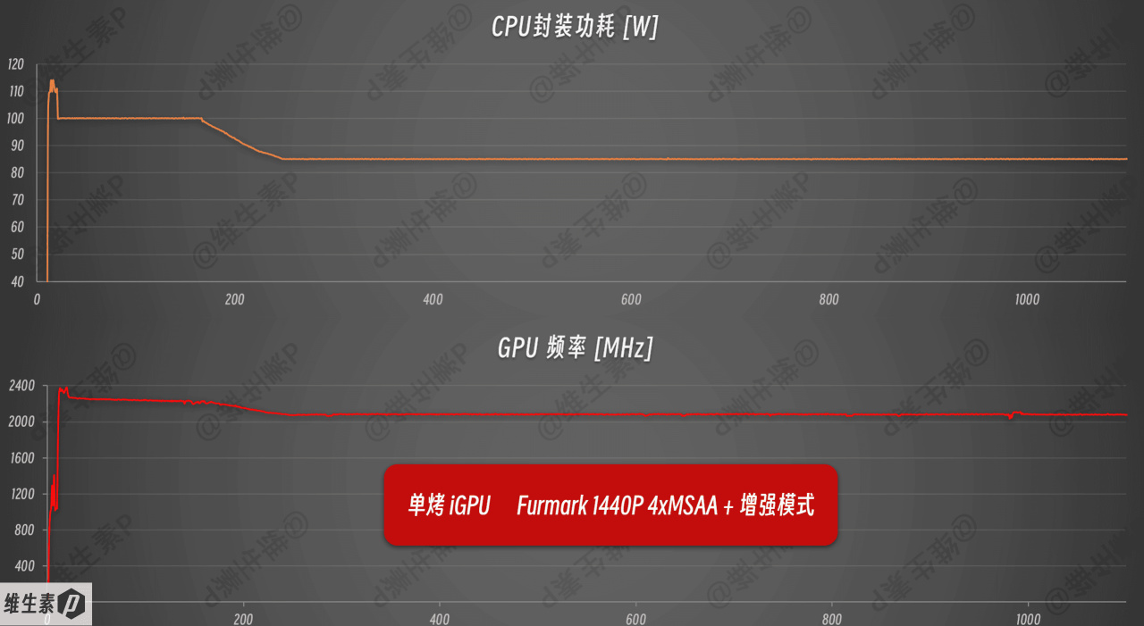 單烤 GPU 的功耗控制也是和單烤 CPU 一樣的策略,功耗曲線和溫度曲線都是一樣的。