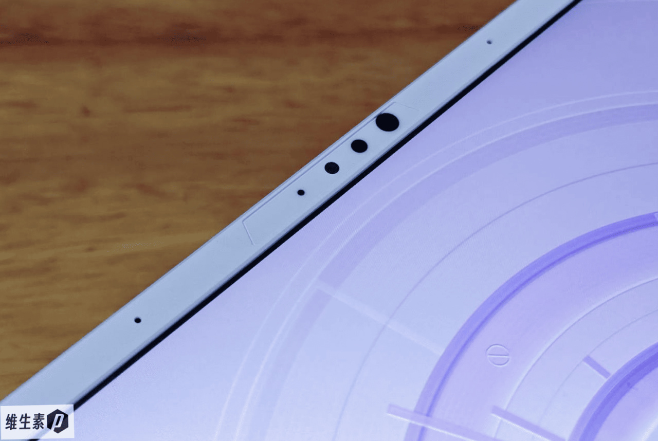 頂部有指示燈,1080P FHD 前置攝像頭,紅外攝像頭,麥克風口,可以支持 Windows Hello 人臉識別解鎖。