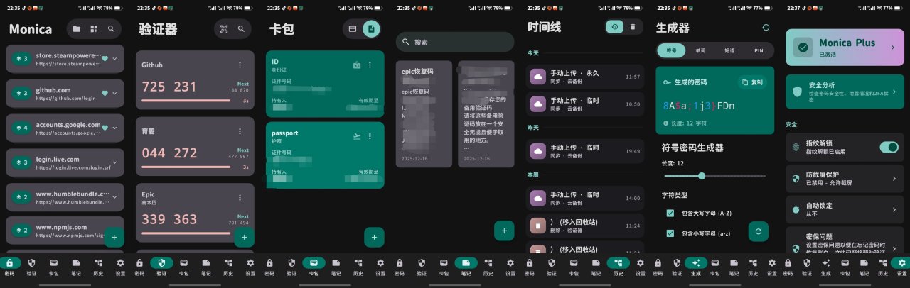 Monica是我做的一个密码管理器2fa验证器以及存储一些有的没的存储的软件,使用kotlin开发,以及jetpack compose布局