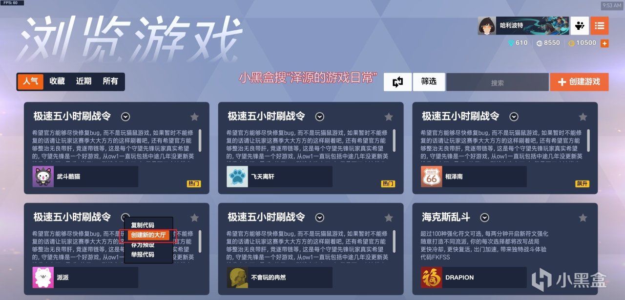 2.隨便進入一個刷戰令的房間,點"創建新大廳"