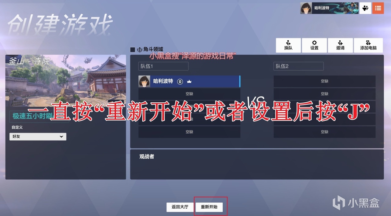 6.或者到設置界面,將重新開始自定遊戲,設置一個鍵位比如"J",然後一直按鍵盤上的"J"鍵就可以了