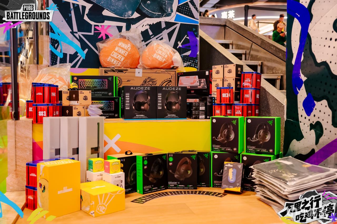 沒有搶到活動名額?沒有關係!來這裏打卡也能收穫我們準備的小小心意。電競鍵盤,主題手辦,還有超多PUBG主題周邊等你來拿。