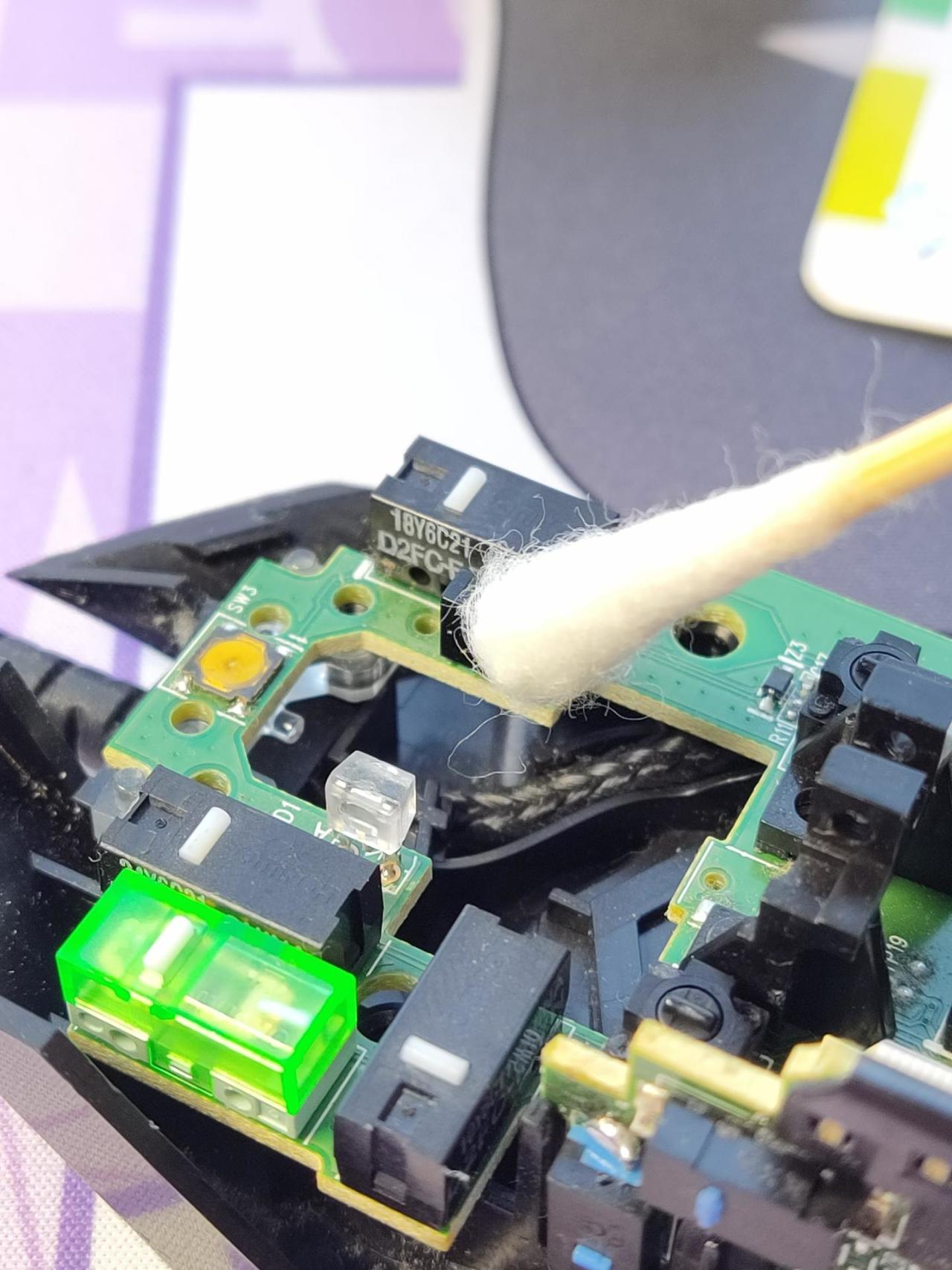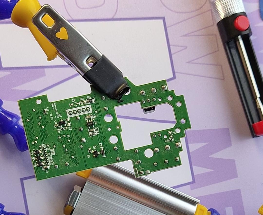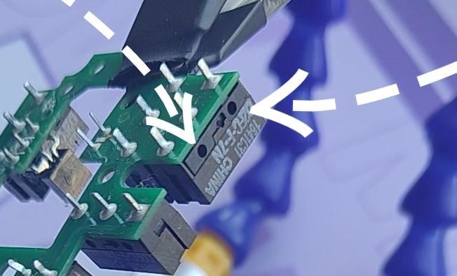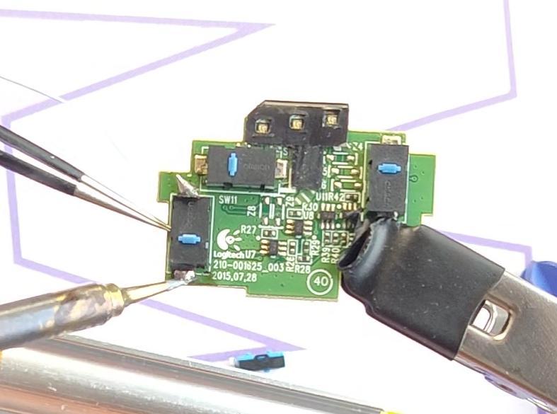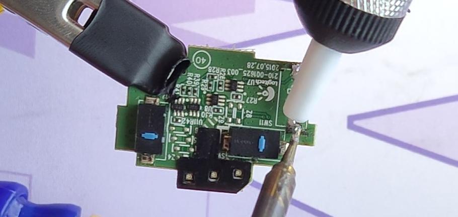风险提示:焊接微动虽然不是特别难,但由于G502的焊盘受热容易脱落,脱落了整块板子就废了。因此建议新手先找个破鼠标练练手,切记请勿大力出奇迹!
