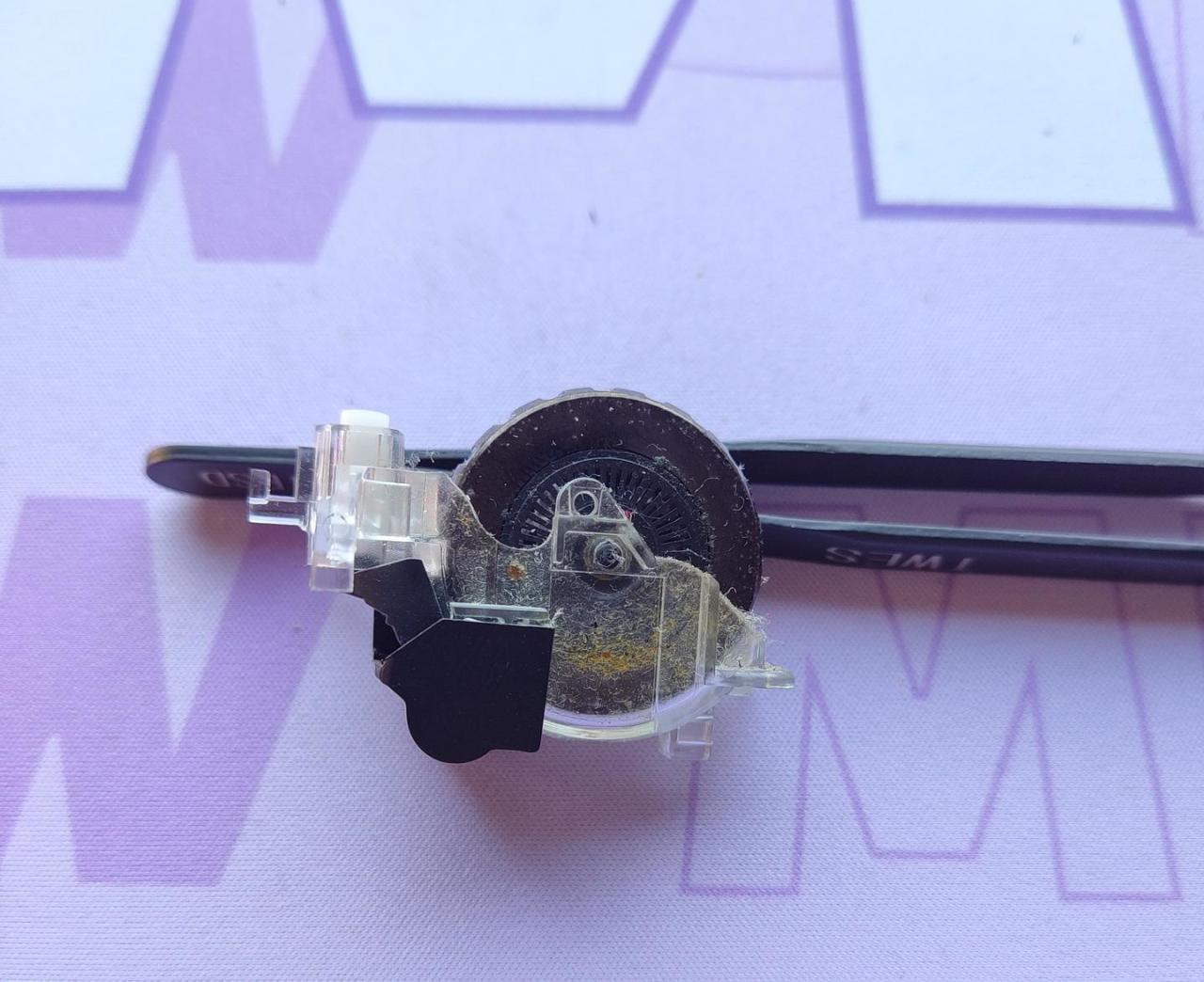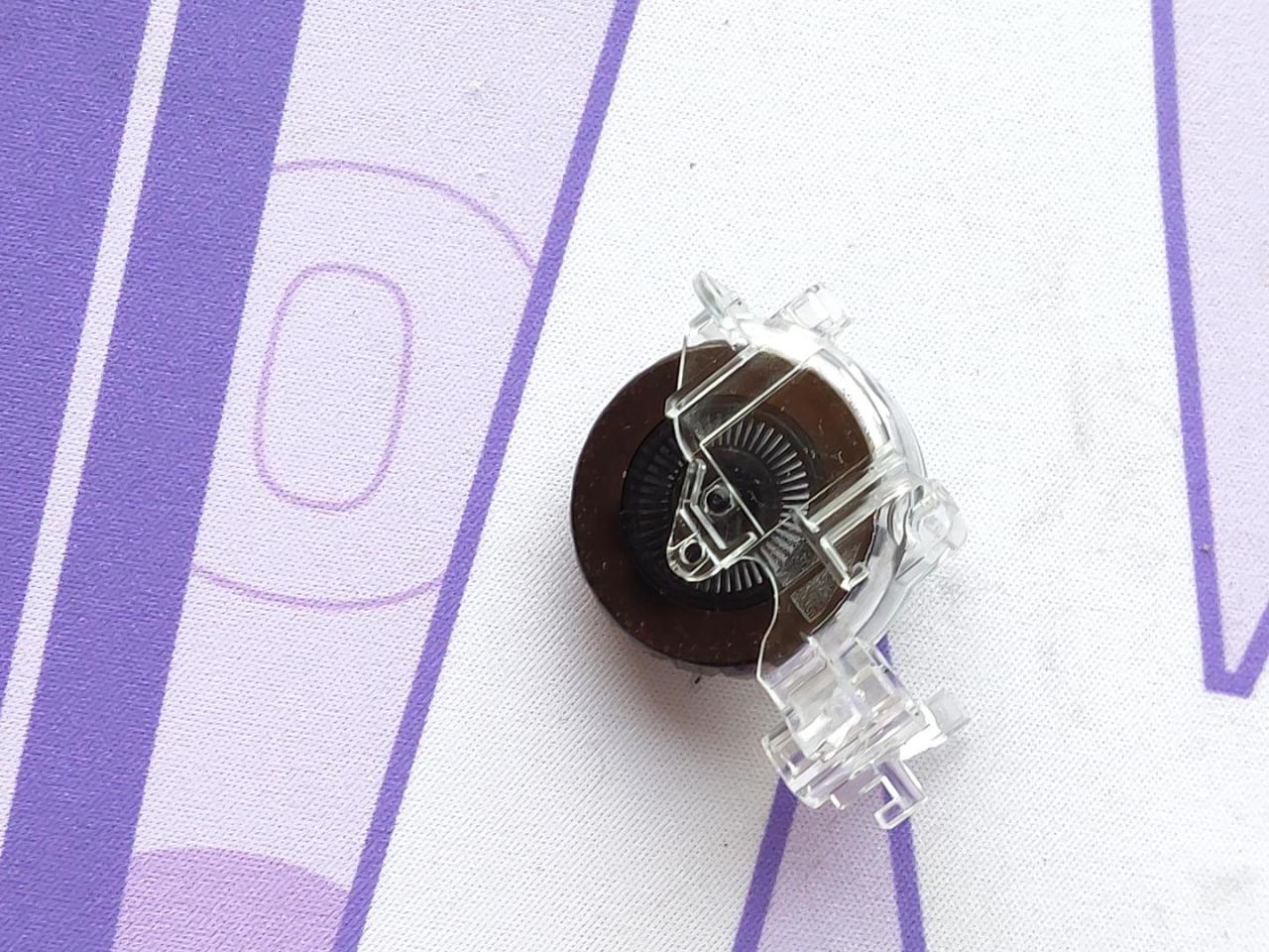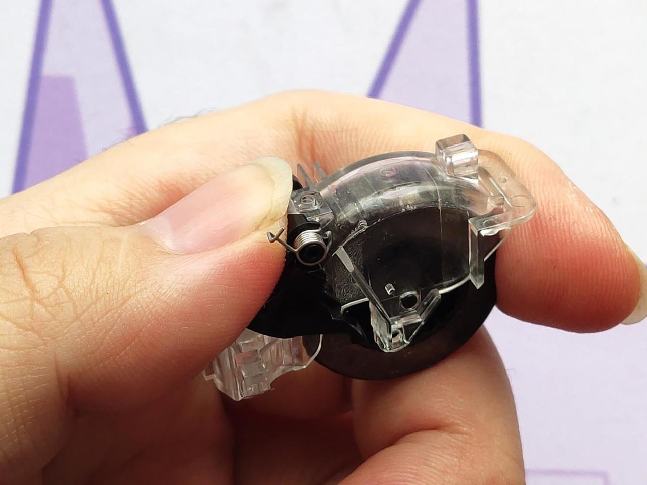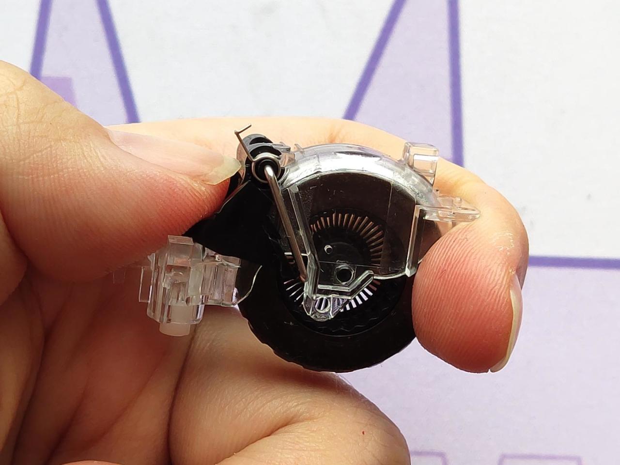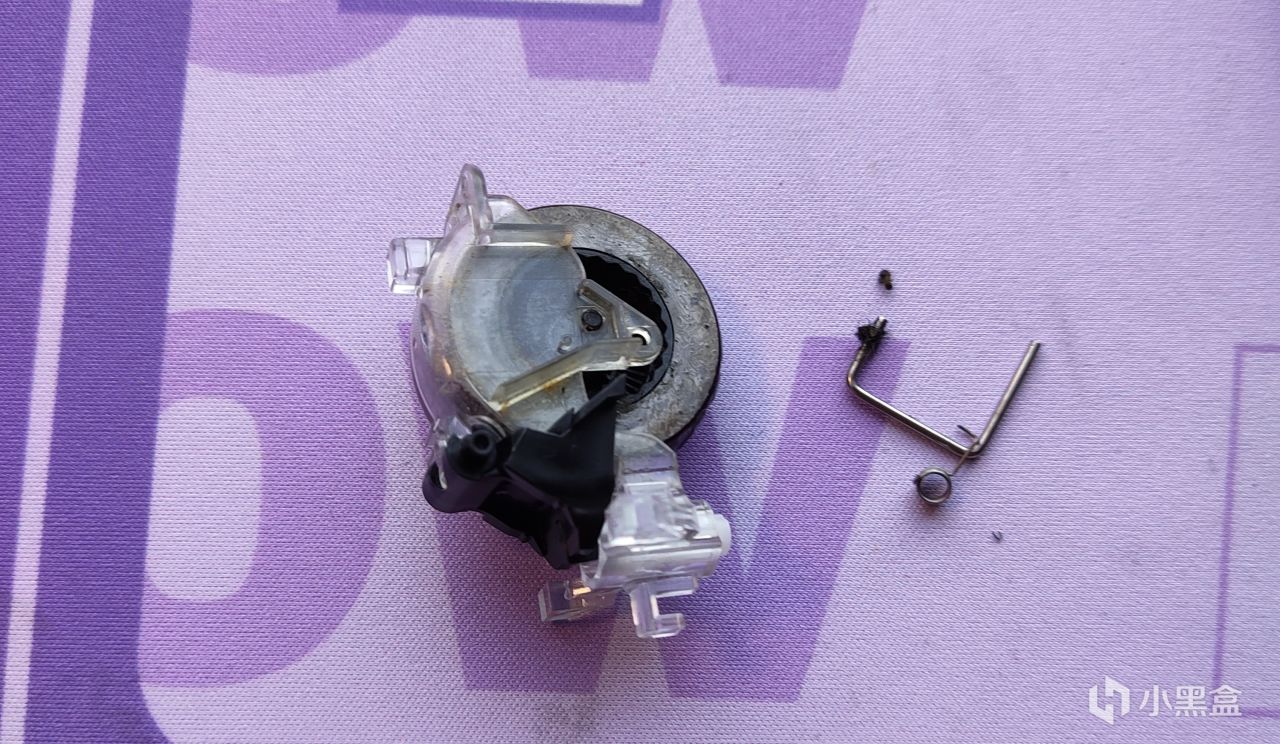接下来轻松把无极滚轮切换器摘下。滚轮的配件都比较小,注意不要弄丢了