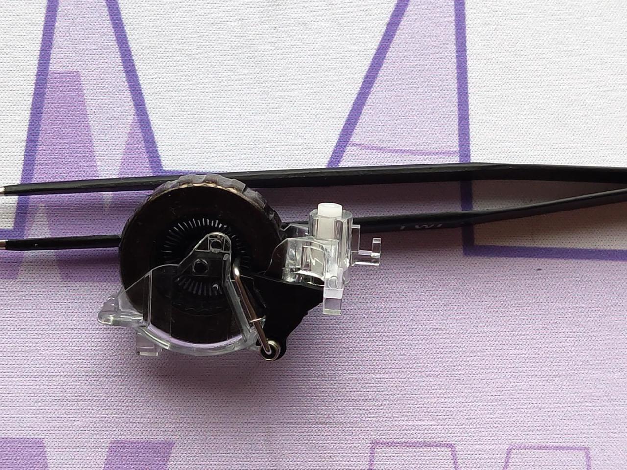 接下来把无极滚轮切换按钮按下图摆放。细心的各位可能发现了,这个切换按钮其实是圆珠笔按钮的结构