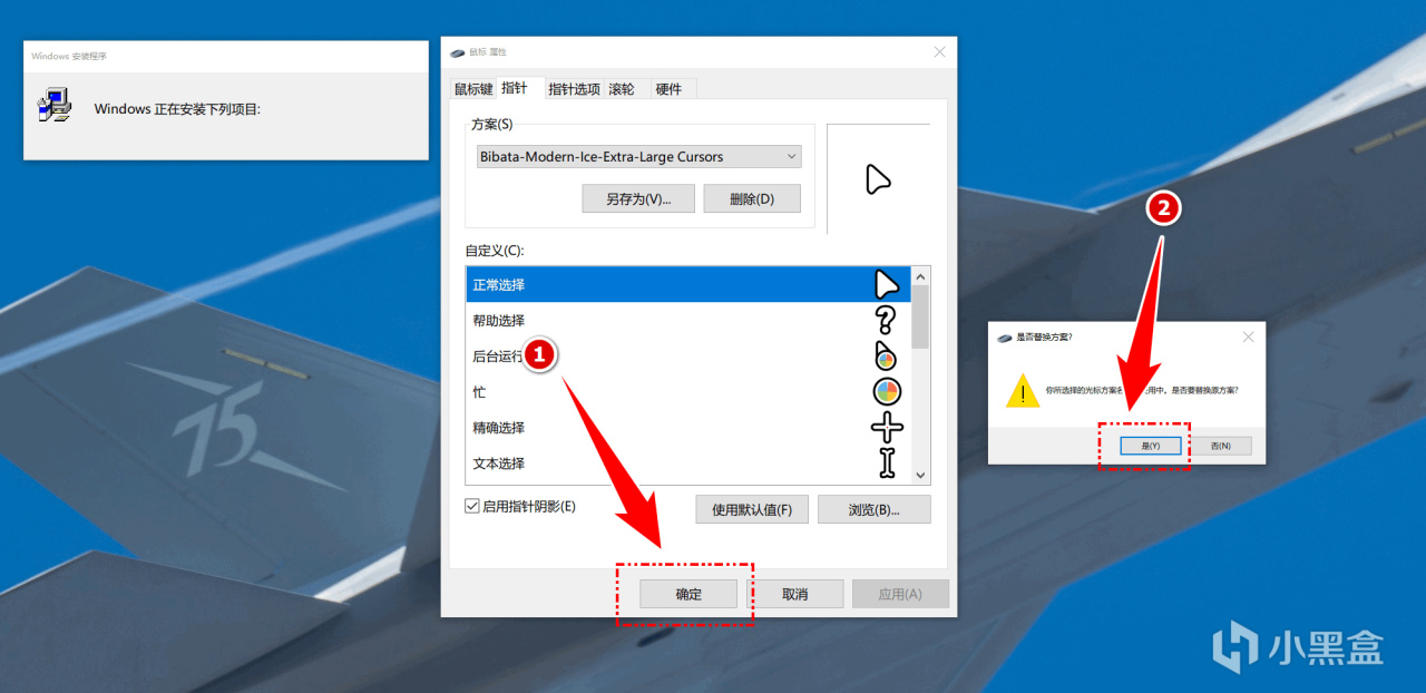 2、即可弹出 Windows10 或 Windows11 下系统默认的鼠标安装切换弹窗 – ① 确认 – ② 是(Y);