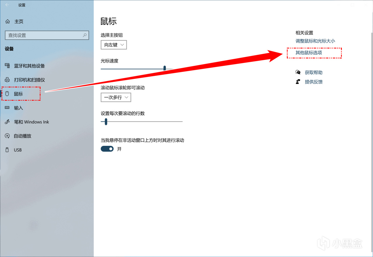 3、过后,若是打算更换鼠标样式,可以点击Windows系统左下角的开始按钮 – 设置 – 设备 – 鼠标 – 其他鼠标选项 – 指针 – 方案 – 选择你喜欢的鼠标样式(自带预览)- 点击【确定】 – 是(Y),完成切换: