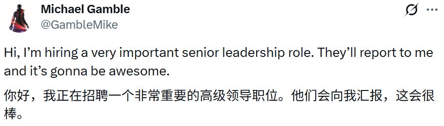 不仅如此,应聘者还需要"持续提升游戏品质与团队水平,培养强大的制作文化,同时将宏大构想转化为卓越的玩家体验。"总体而言,这是一个相当高阶的职位,可能预示着项目即将进入(或已进入)积极开发阶段。
