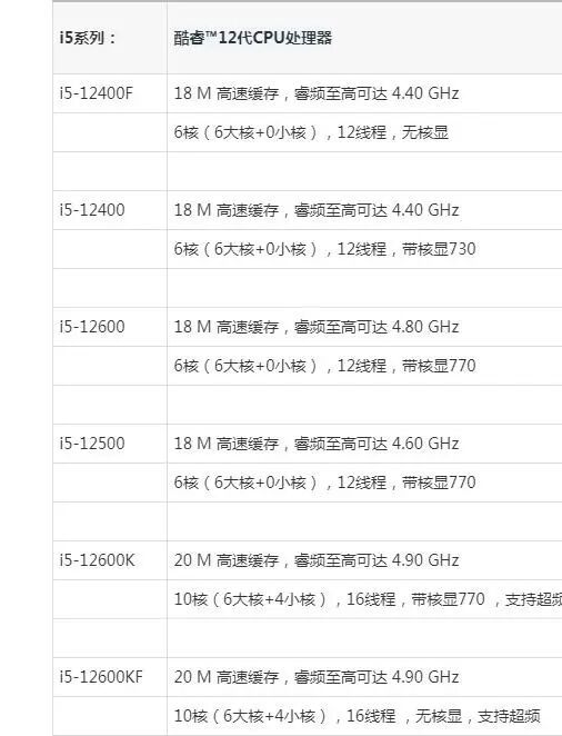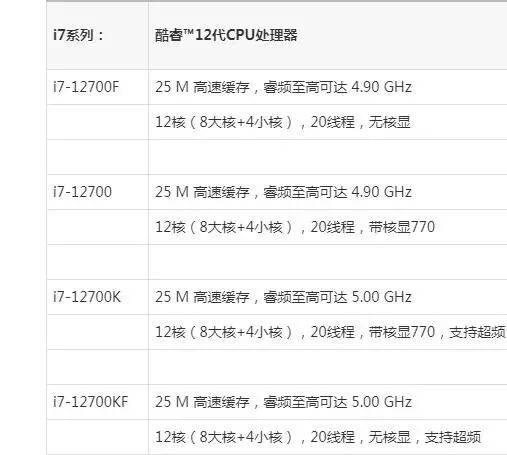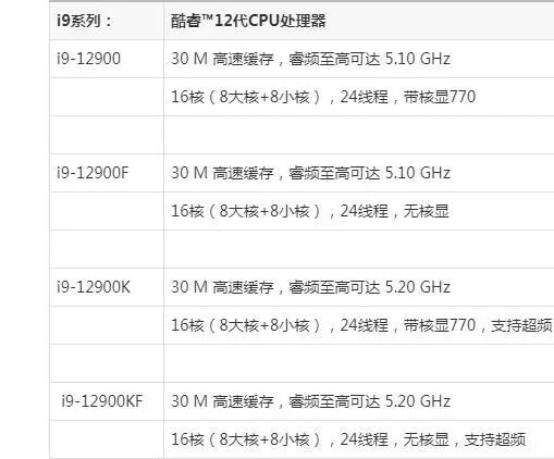 最后一起来看看最经典的12代酷睿处理器的基本参数: