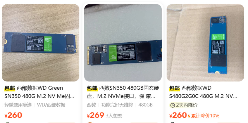 固态硬盘——西部数据 WD SN350 500G NVMe 或 海力士 SK hynix BC501 512G——150 - 220元