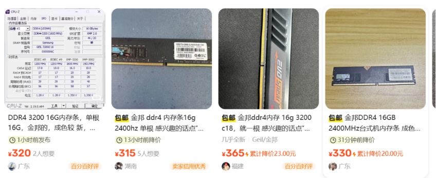 内存——金邦 DDR4 16G 3200MHz——120 - 180元