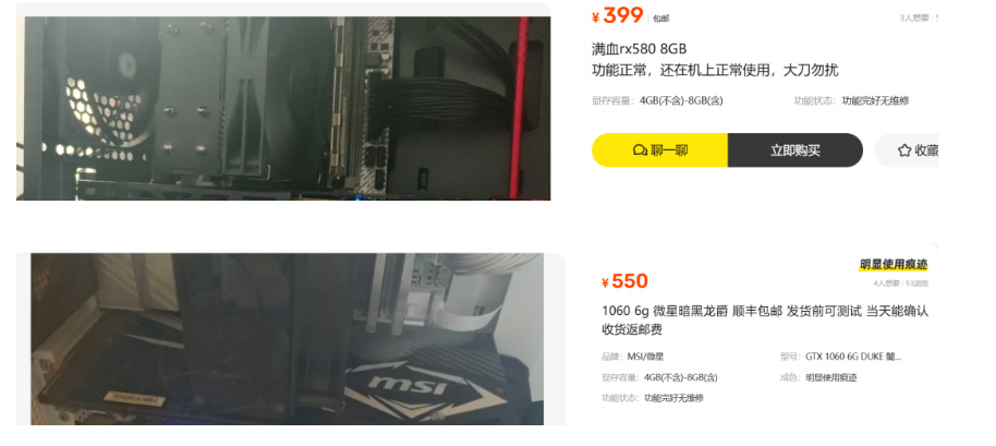 显卡——双敏 RX580 8G 或 影驰 GTX 1060 6G——300 - 500元