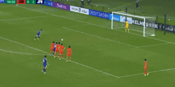 第59分钟,古谷格介的传中击中刘浩帆手臂,VAR介入后判定点球,佐藤龙之介主罚低射球门左侧命中,日本3-0领先。