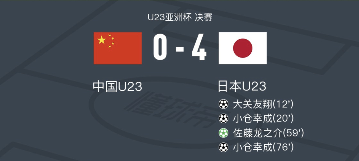 首次晋级决赛的中国U23男足以0-4憾负卫冕冠军日本队,与冠军失之交臂。