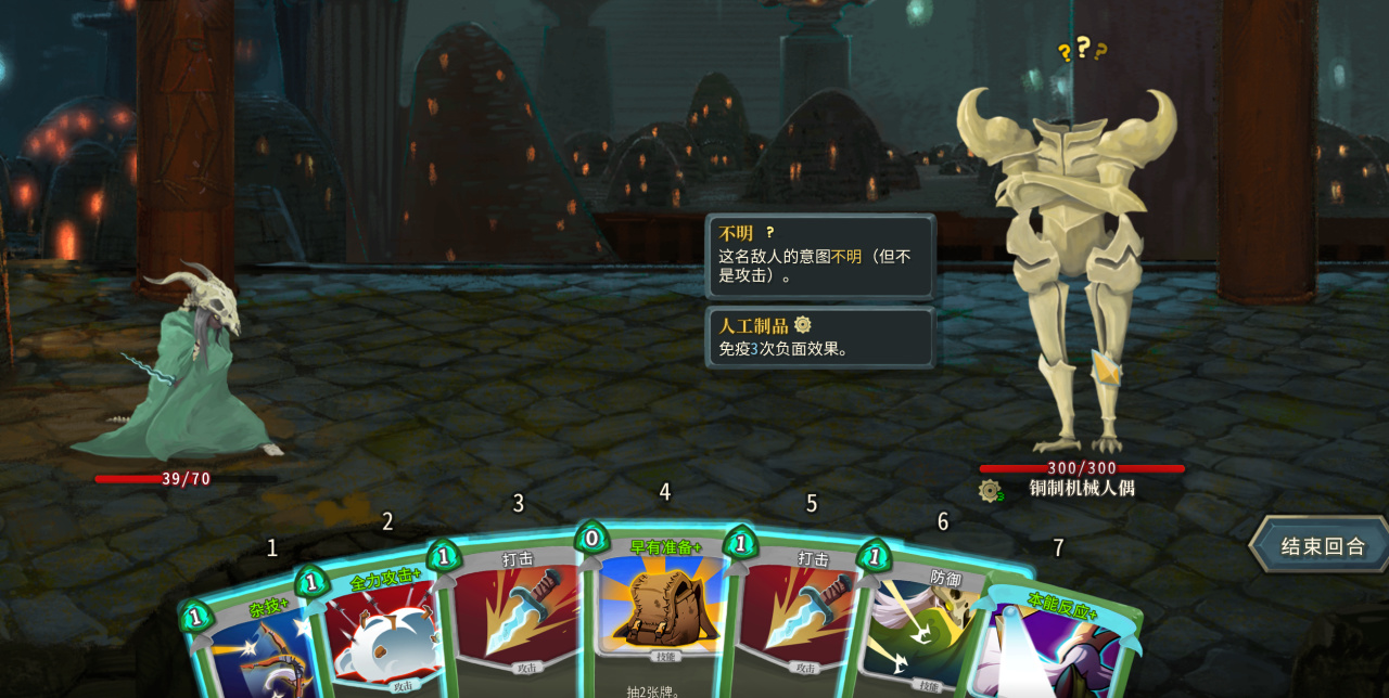俗稱銅人,自帶人工製品,第一回合會召喚兩個小弟,這兩個小弟會偷牌,對於大卡組來說好打一些,小卡組偷牌容易卡運營。不知道是不是錯覺,小二每次遇到他,總能偷走最關鍵的兩張。自身傷害數值也比較高,算是二層BOSS裏面比較強力的存在,尤其是偷到核心中的核心時。