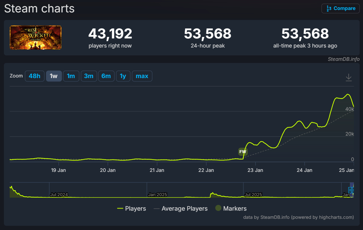 今天早上5点,《恶意不息》Steam在线峰值创新高!同时在线玩家数突破至5万。