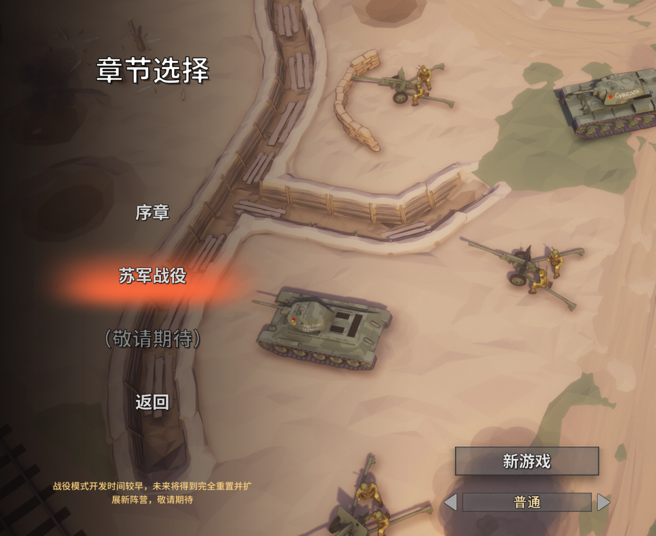 战役模式相比经典模式更加自由,可以对军队进行一些特殊的升级,有点类似魔兽的战役玩法。目前战役模式只开放了序章和苏军战役。所以主要还是前两个玩法为主。要知道游戏目前还只是EA版本,内容就已经如此丰富了。后续制作组还会不断的塞内容,添玩法,可见性价比非常高。