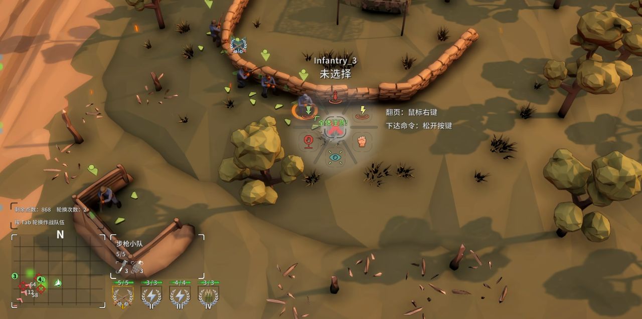整体玩法有点像红警类型,有多个编队可供管理操作,下达一些移动、、警戒、冲锋等指令,对军队进行排兵布阵,战术规划。