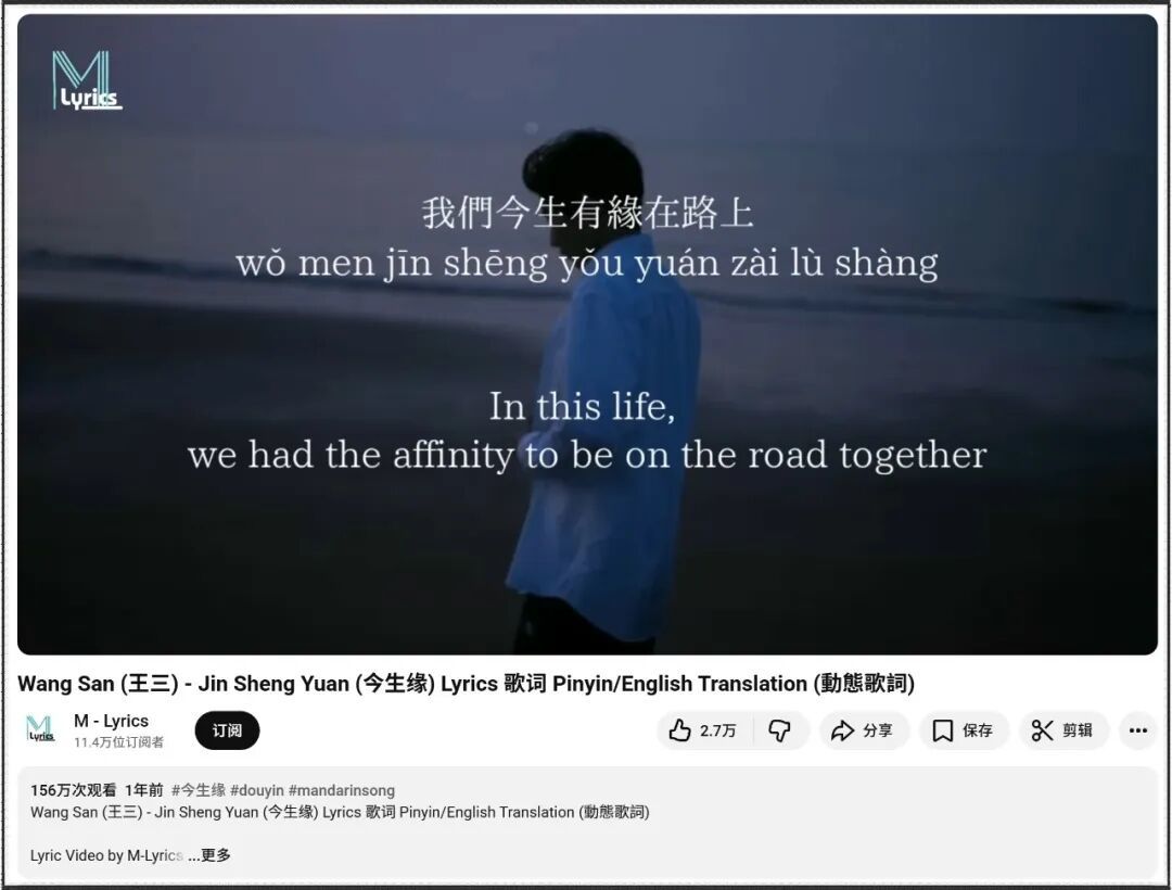最搞笑的是,开头那句“我们今(生有缘在路上)”,在外国人听来发音极像“Women cheat”(女人出轨),瞬间给人一种老婆出轨、一事无成中年男的沧桑感。