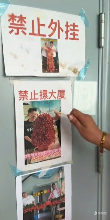 誰想到啊,沒過幾天小夥子又來了,阿姨見狀,趕緊給他們展示自己做的禁止外掛的告示說:“讓你們摞,沒讓你們掛,這次不準掛了啊!”