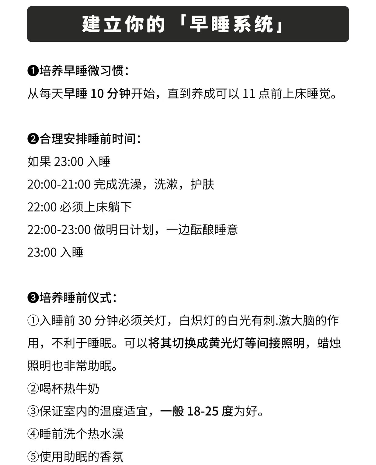 2. 创造环境:睡前1小时远离电子设备,调暗灯光,可阅读或冥想。