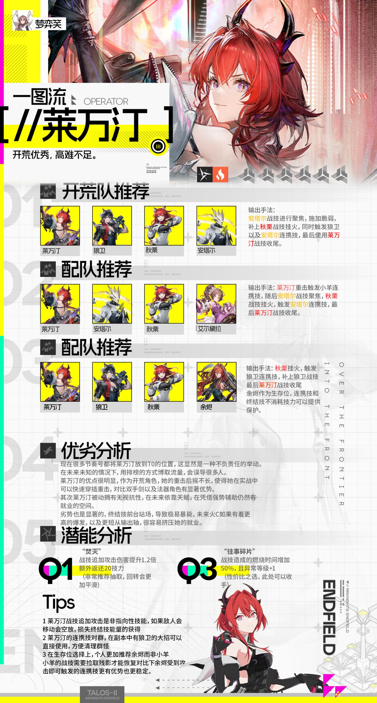 很多人还没有挑战高难BOSS以及高级副本,实际上莱万汀在这里面表现一般。新手使用在没有高星生存位会出现被连击秒掉的情况,对比伊冯,同样开大站场,伊冯有安全距离和更高的输出,实在谈不上优于伊冯。