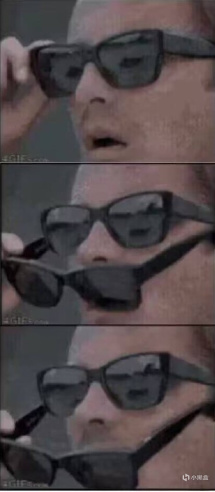 哦,这下看懂了,这个梗出自《迈阿密风云》,原视频是只有一副眼镜,后来MEME中给加了一副粘脸上的。老登们当然是看满离,海猫这句“原来早已化为了互联网历史的尘埃”也是有一丝丝的悲伤,海猫老矣,我们也老辣!