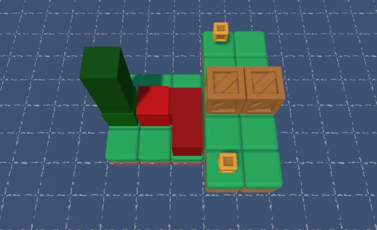 而本作选择了一个挺巧妙的限制方式:每条蛇都只能在一个平面上“上下左右”移动。这里的“平面”并不只是指地面这个“横”着的平面,还可以是“竖”着的平面。不同颜色的蛇的“移动平面”不同,虽然各自只能“2D”移动,但合起来确实能产生一些只能在三维空间中实现的可能性,这样就既限制了可能性的数量,又能够探索到一些有趣的3D挪移可能性。