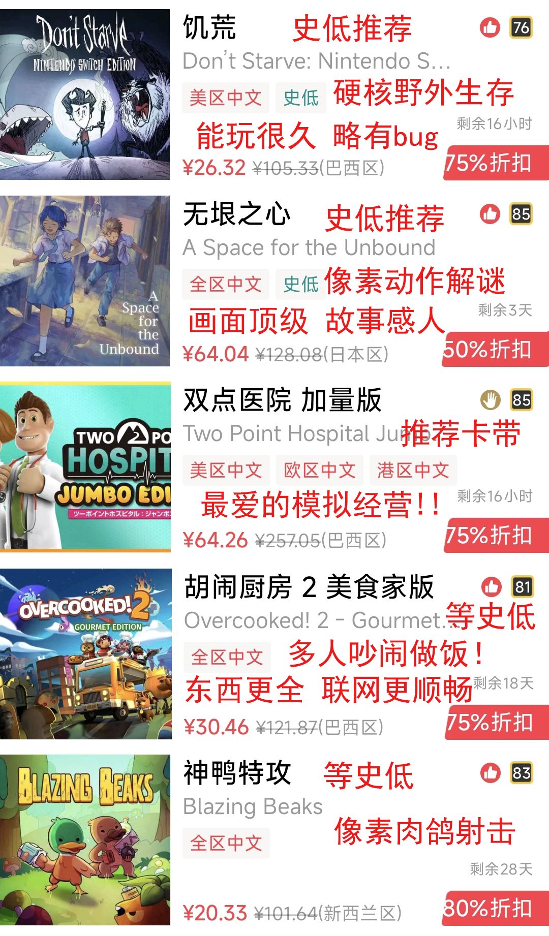 第一组游戏 干饭推荐 《双点医院 加量版》最爱的医院模拟经营 中文语音特别接地气 《胡闹厨房2 美食家》最高性价比 联网顺畅的版本 低价可直接入