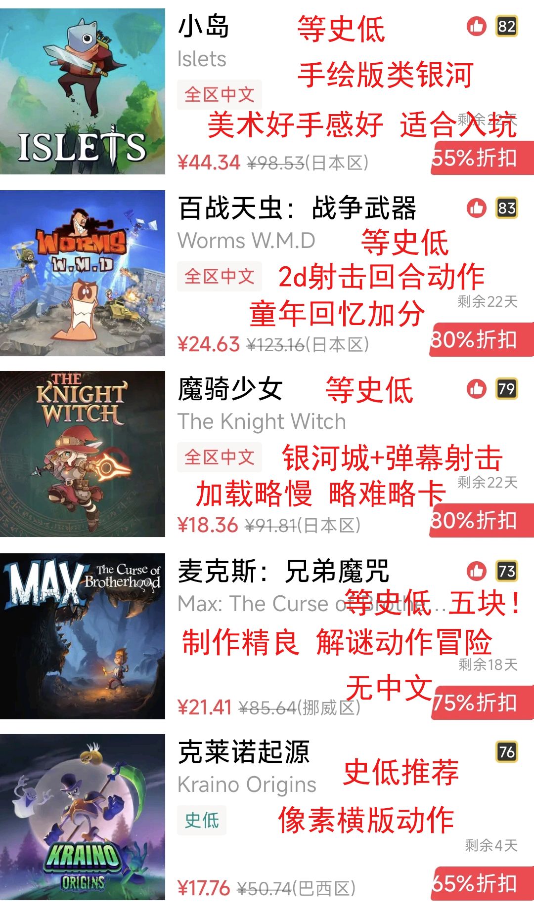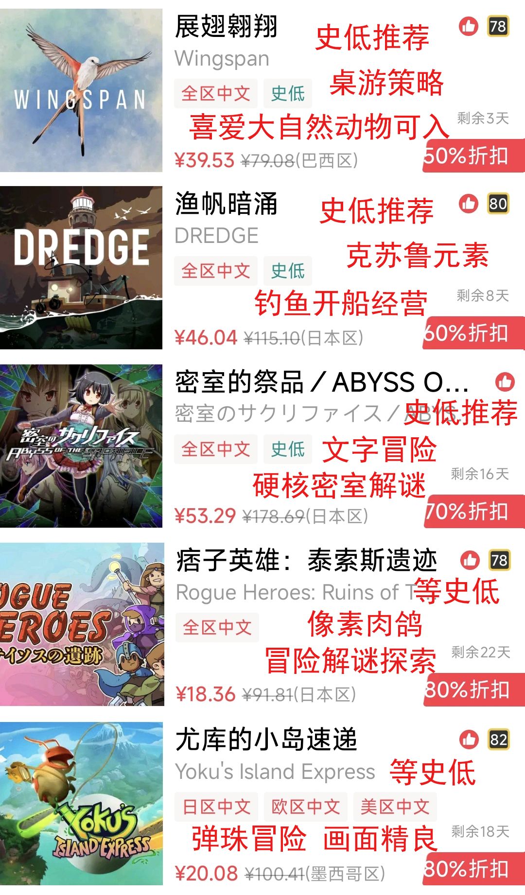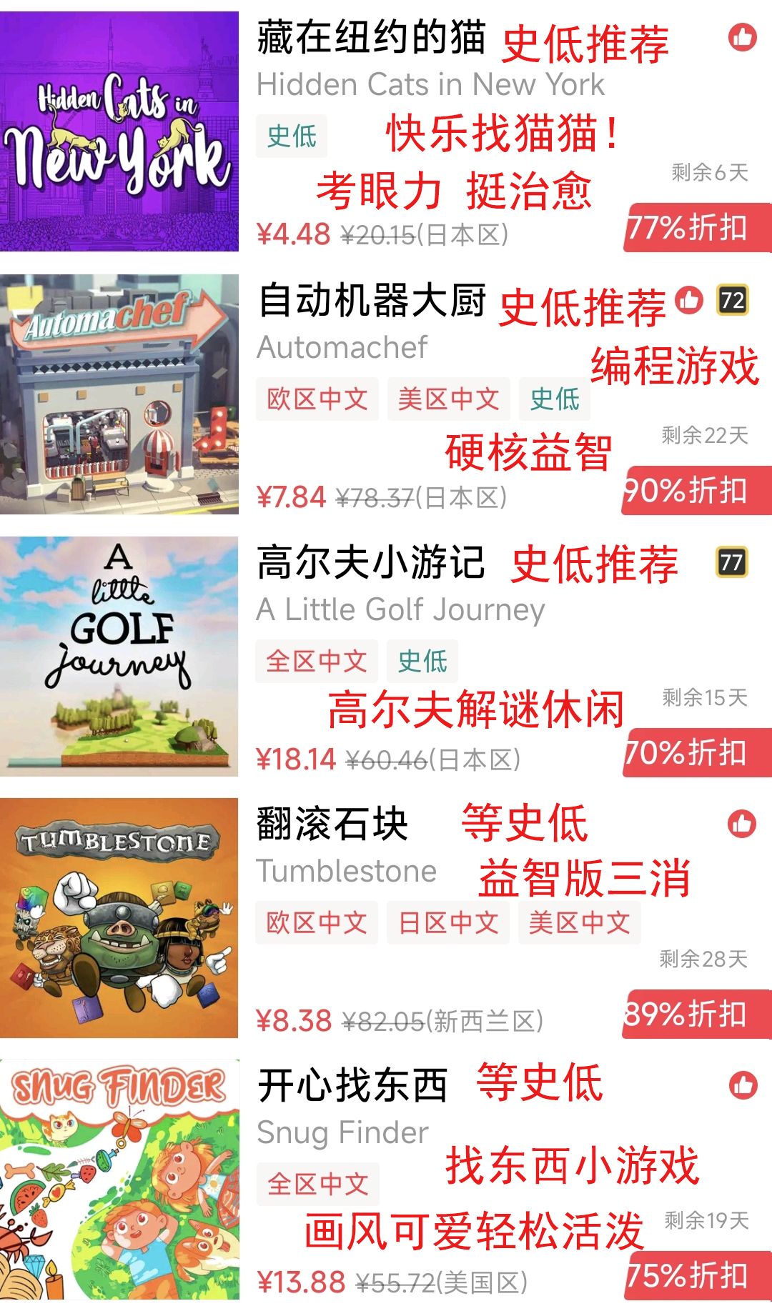 个人建议先买史低推荐的,然后在蹲蹲低价游戏大家按照喜好自行购入~~