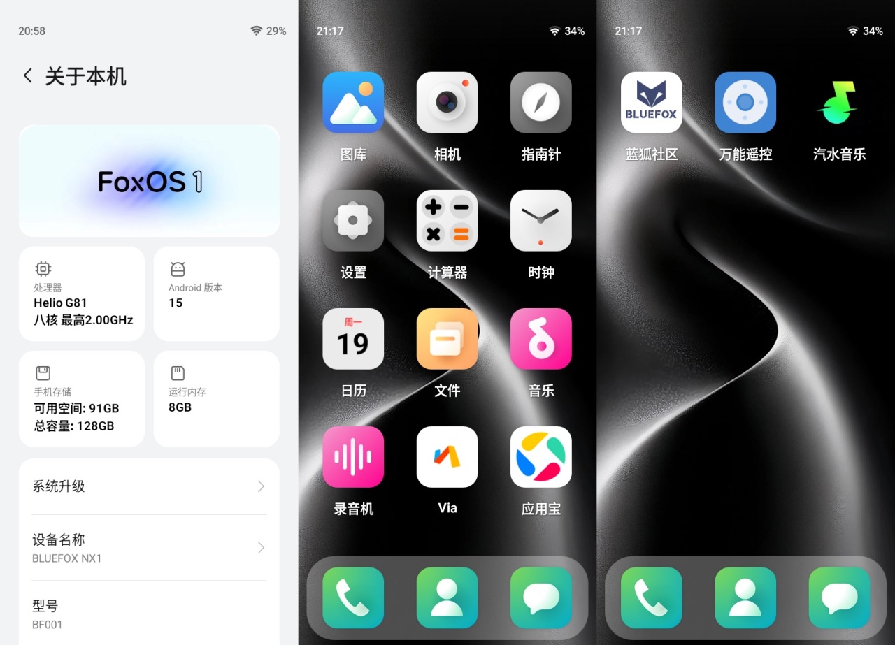 系统是原生的安卓15,挺干净的,初次进桌面除了系统自带的软件,就只有应用宝和VIA浏览器以及万能遥控和蓝狐社区,想刷谷歌框架得买之前和客服说,到手后自己安装是装不上的。