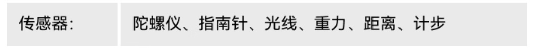 陀螺仪、GPS、光线传感器、加速度传感器、距离传感器都有