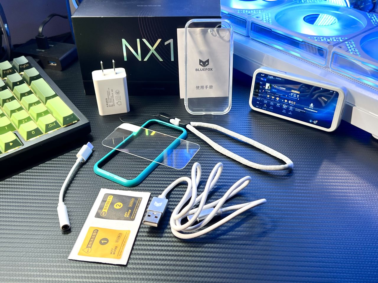 首先是一个10w的充电头,这东西现在很少很少有手机厂给手机标配了,然后是一根约50cm长的铝合金外壳+细密编织外皮的Type-C线,以及同样很少见到的3.5mm音频转接头,还有一根浅灰色挂绳,甚至还有全套的保护壳+钢化膜套装,还贴心的给你准备了贴膜神器,最后就是差点忘说的卡针。配件的做工细节很用心,像数据线、卡针、挂绳上都有BLUEFOX的字母或者LOGO。