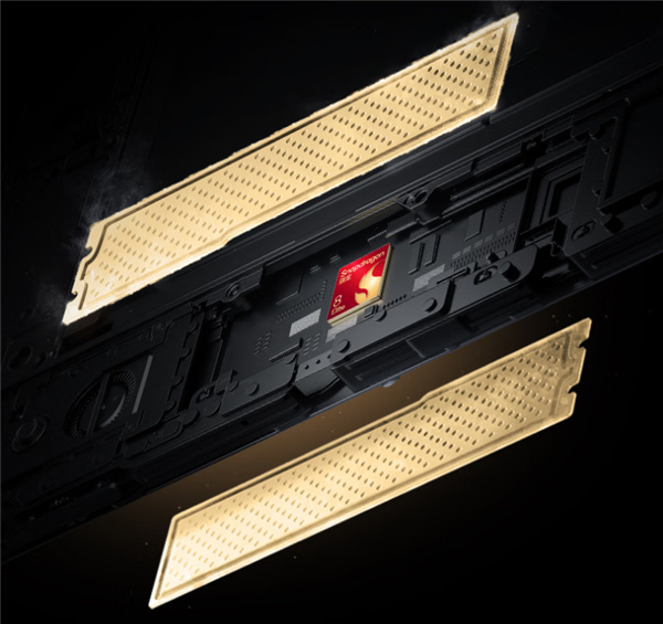 最關鍵的是,散熱VC上採用了鍍金工藝,大幅提升散熱效率,搭配轉速高達20000轉/分鐘的馭風2.0渦輪增壓風扇,讓驍龍8至尊版實現持久的滿血輸出。