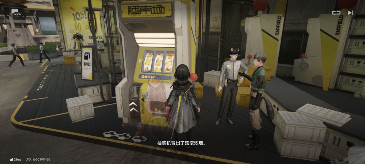 ②在工人社區有一個搖搖抽獎機,屑管理員一開始沒抽到獎還試圖用源石技藝嘗試作弊,然後給機器搞燒了,還會吐出一個紙條讓你去報維修